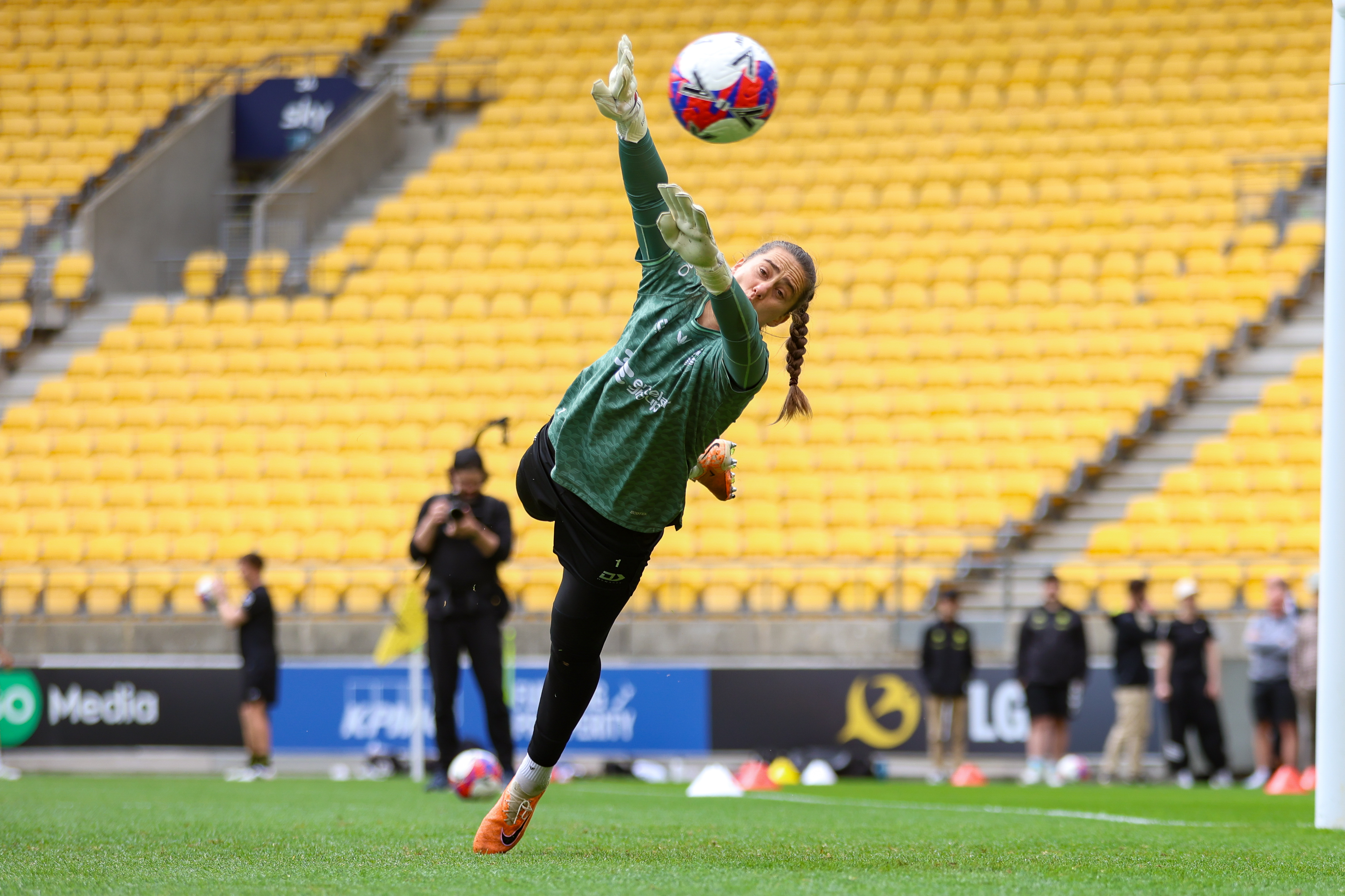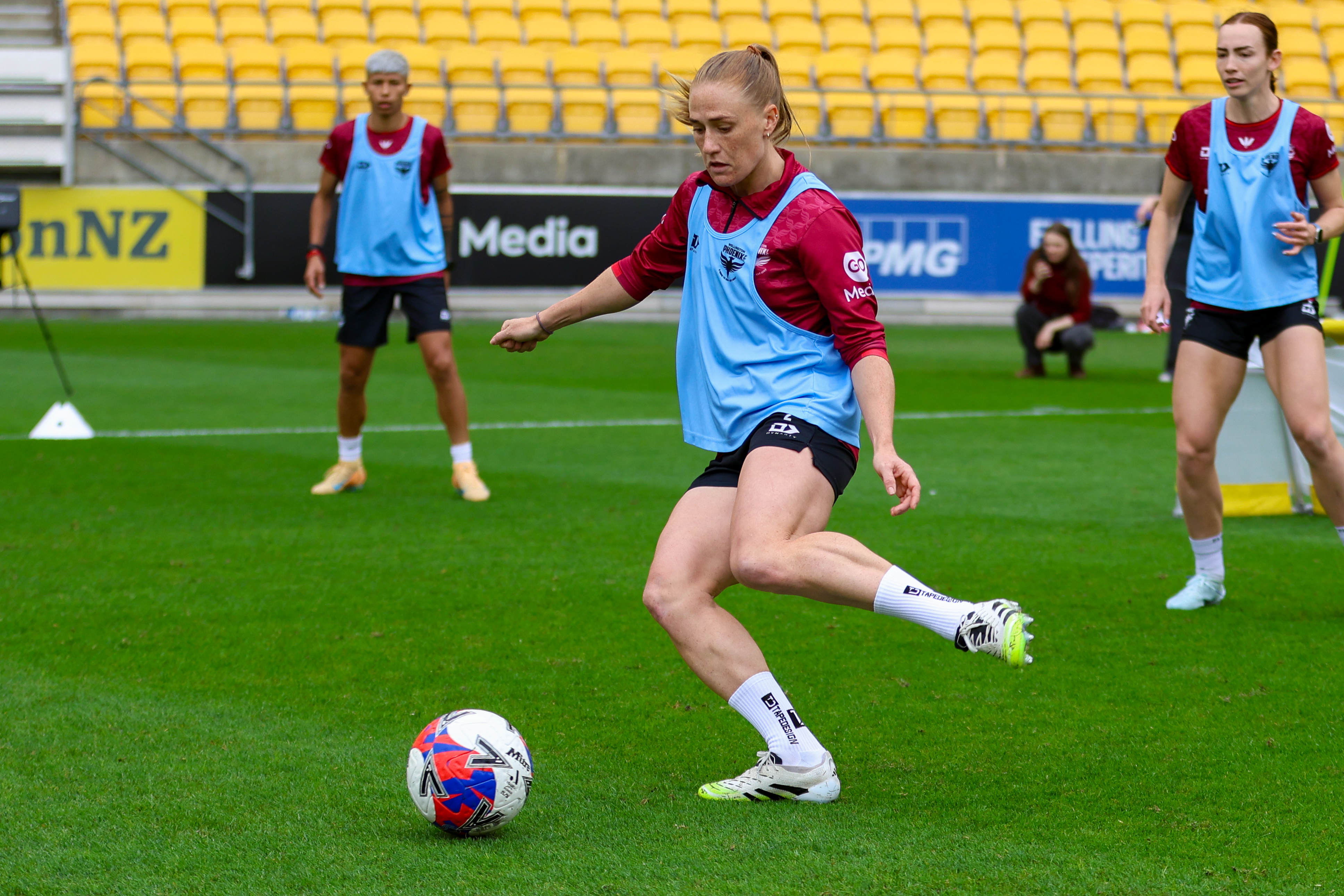 Main image: The Wellington Phoenix women walk out for training at Sky Stadium. Photo: Cam McIntosh/Photomac.