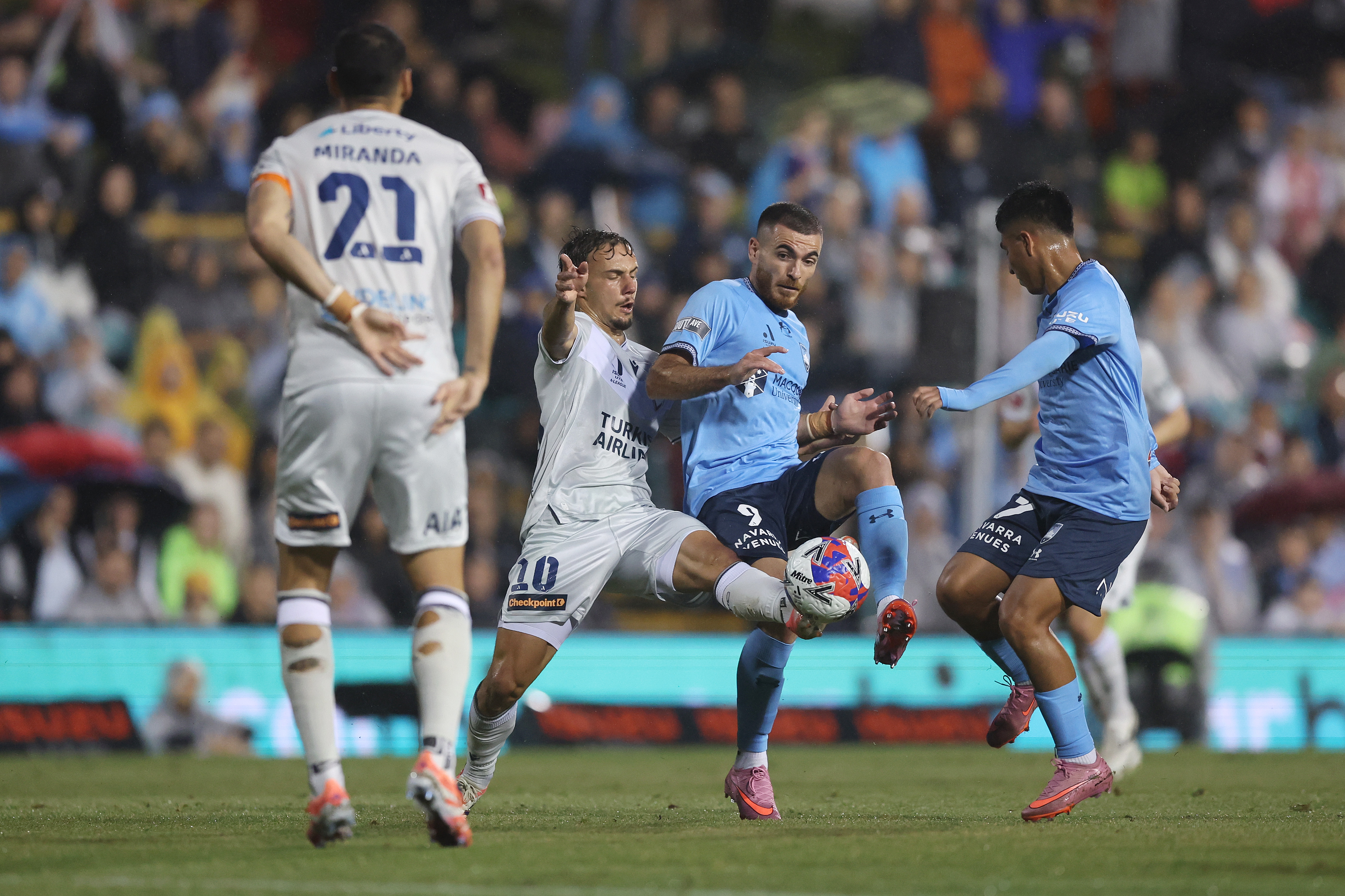 Victory begins to put Sydney FC on the back foot with 20 minutes remaining when Jelacic gets past King, to the byline and whips a ball into danger. Alex Grant gets in the way touching it into open space, Mata follows up but is blocked by Rhyan Grant.