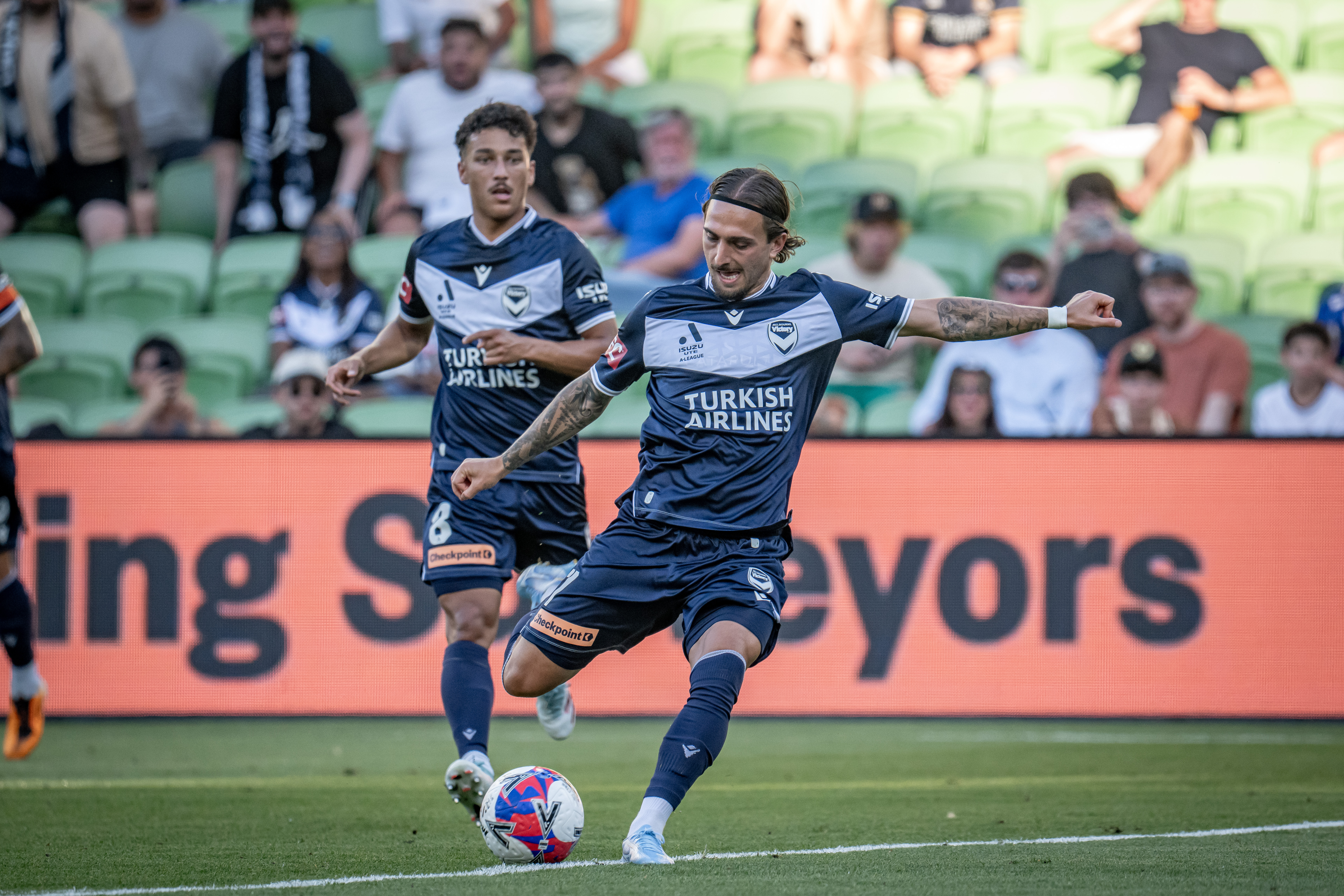 The irresistible Nishan Velupillay opened the scoring in the ninth minute after a successful press from the front by Victory, and they had more success attacking as the half rounded out, when Bruno Fornaroli doubled the advantage.