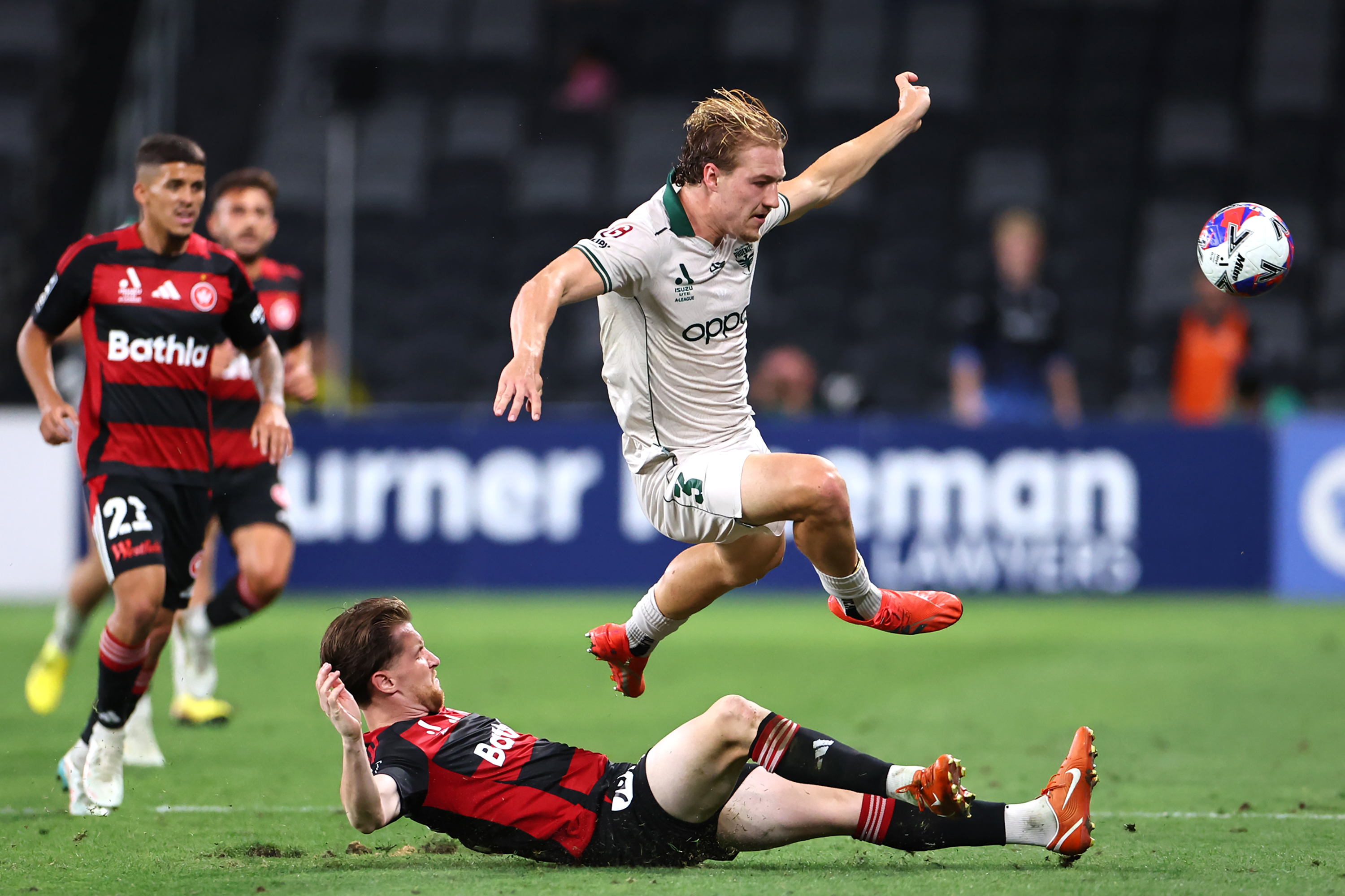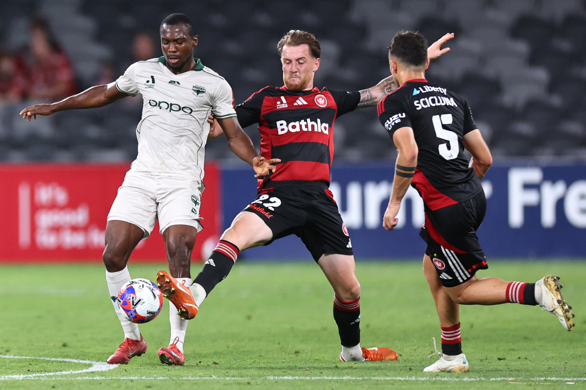 Phillip Cancar doubled Western Sydney’s lead two minutes out from halftime when his shot from distance burst through Kelly-Heald’s hands and into the Wellington net.