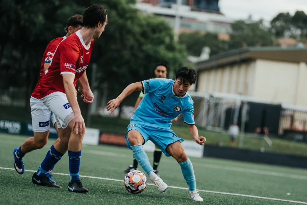 Takumi Ofuka taking on Sydney United players